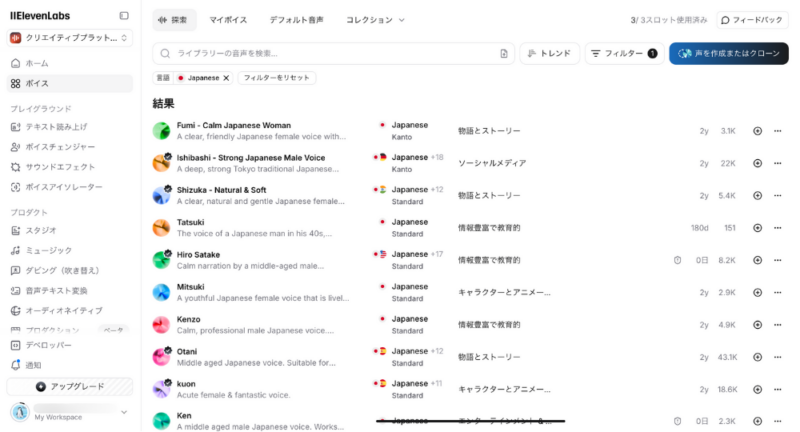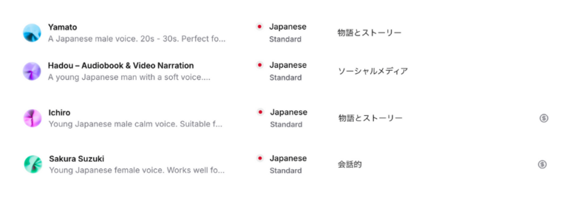 スムーズに生成するためにも、まずは「お気に入りの日本語音声」を探してみてください。