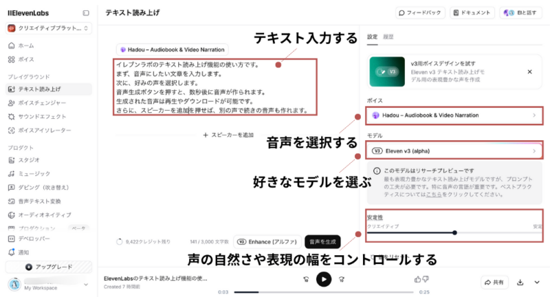 • ElevenLabsの高性能音声生成AI(Eleven v3)を使ったテキスト読み上げ